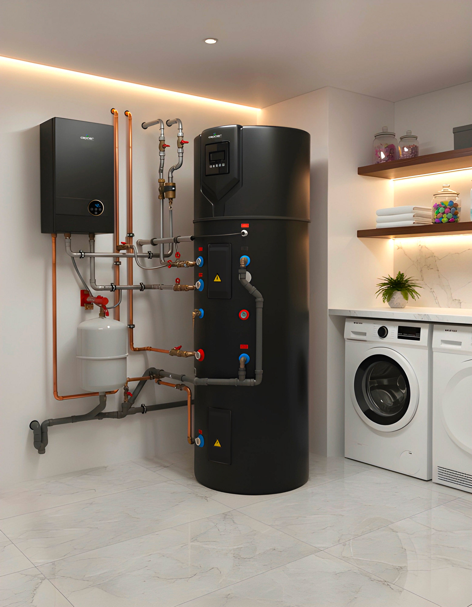 The thermodynamic boiler is the main ALL IN ONE system, efficient and environmentally friendly.
